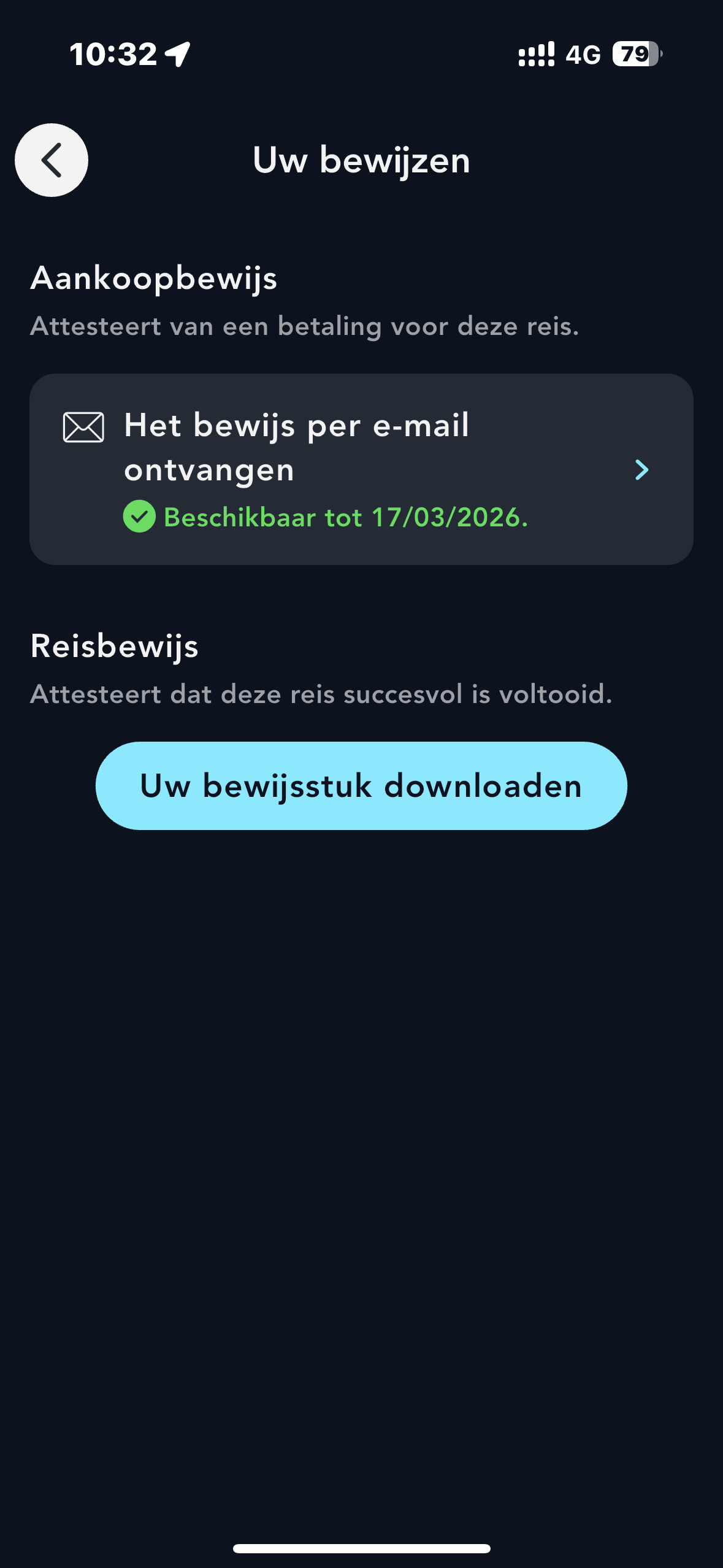 In tegenstelling tot uw aankoopbewijs, getuigt het vervoersbewijs ervan dat u uw treinreis heeft voltooid.